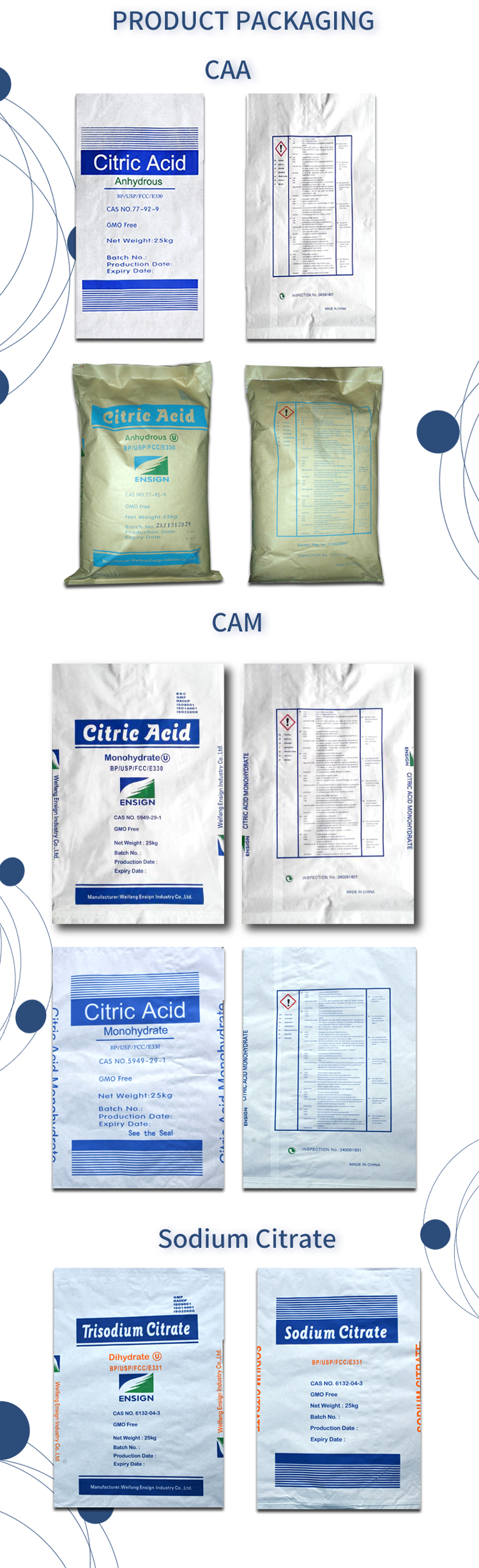 As a premier global supplier of Citric Acid (Anhydrous and Monohydrate), we pride ourselves on delivering not just high-purity chemical ingredients, but also comprehensive customized packaging solutions tailored to your brand’s specific needs. Our product adheres to the strictest FCC, USP, and BP standards, ensuring 99.5% minimum purity for food, pharmaceutical, and industrial applications.